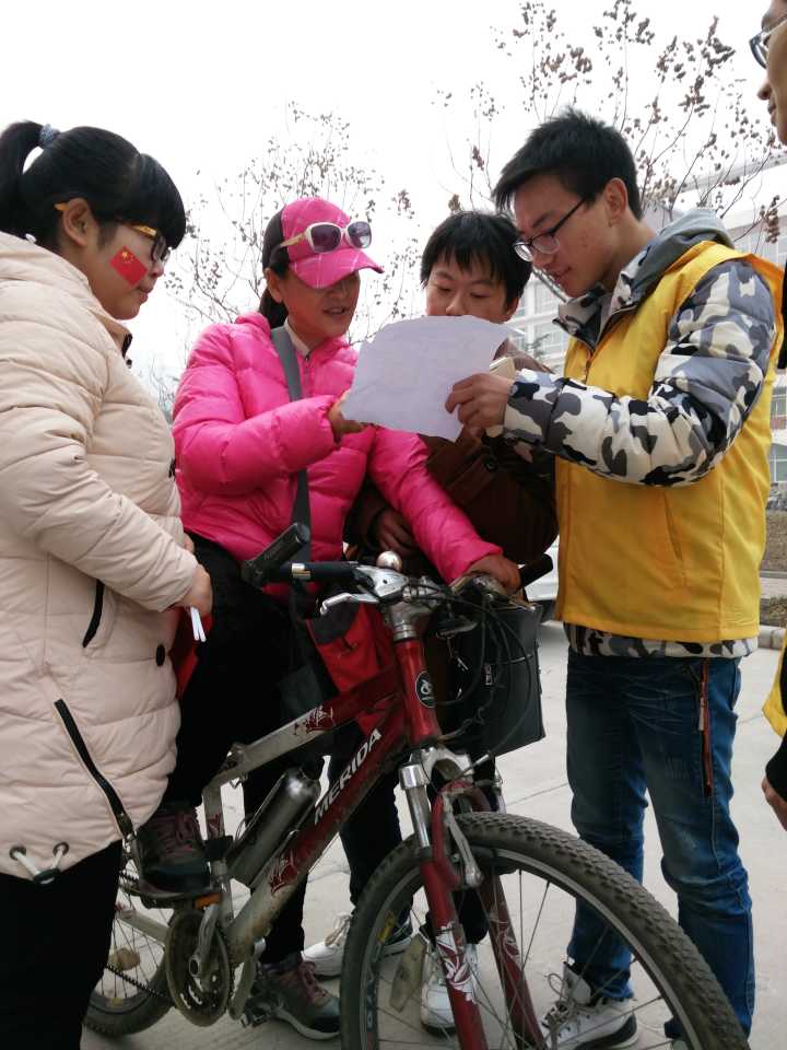 此次活动形式采用当今流行的“任务模式”。参赛人员通过抽签选择自己的队友和任务点,找到任务点后从裁判处领取“一二•九运动知识问答”题目卡。此题目卡必须由路人来回答,同学们热情高涨,积极请每位经过身边的老师或学生回答问题。最先答完题目且正确率达到90%以上者,可领取任务卡完成任务。任务主要包括:“放飞梦想、兴我中华”现场签名;召集校园行人齐唱团歌;共喊“诚信、自强、力行、拓新”校训口号;向过往师生发放“铭记历史,勿忘国耻”纪念宣传页等。同学们一声声激情飞扬的口号,吸引众多同学纷纷参加到签名活动中。在签名板上,郑重签下自己的名字,留下了他们爱国爱校的情意。