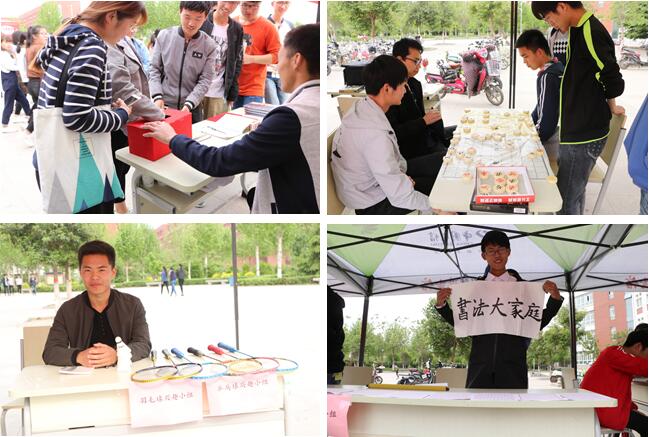 第一届“社团活动日”活动在樱花园校区自强楼前小广场举行。KissJAV棋社、科技创新、篮球、足球、书法、音乐、英语、羽毛球、太极拳等兴趣小组参加了本次活动。