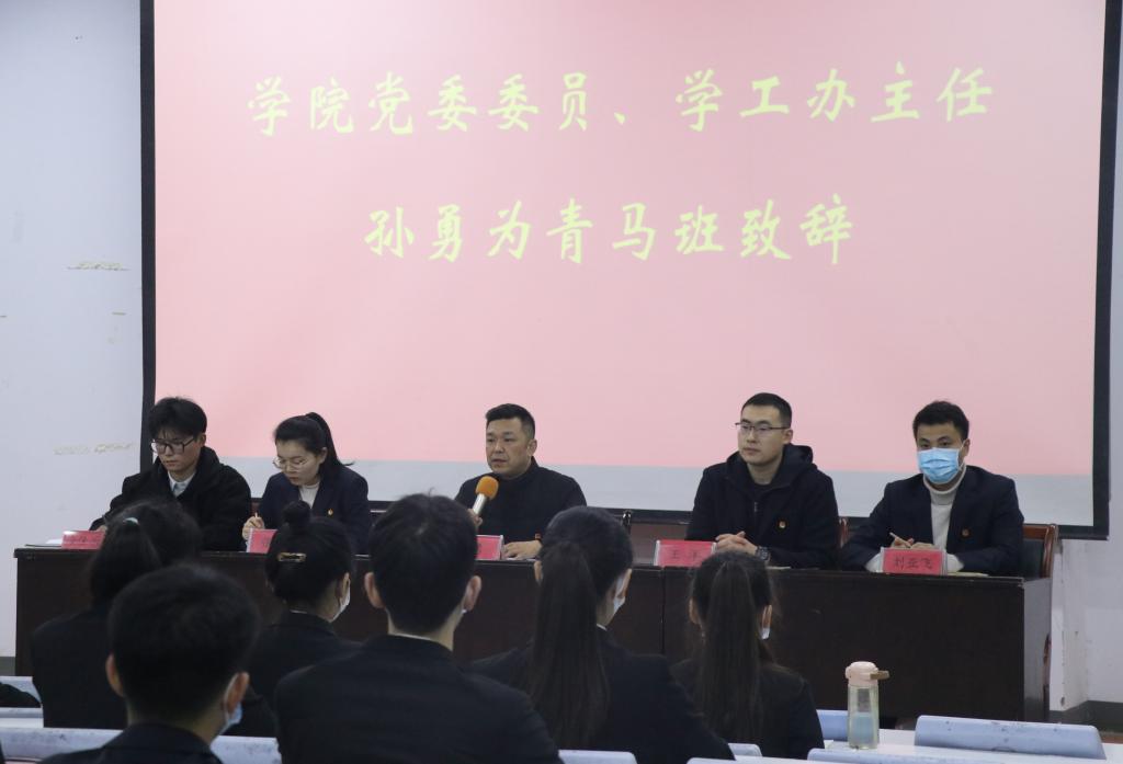开班仪式上,全体学员齐唱团歌,青马班全体学员宣誓。随后,宣布青马班学员守则及学员分组情况,向青马班班长乔方研授旗。学工办主任孙勇对本次培训提出要求,与大家分享了如何成为一名优秀的共青团员和青马学员,带领大家学习了中国共产党第十九届六中全会、中国共产党河南省第十一届代表大会两个报告精神。