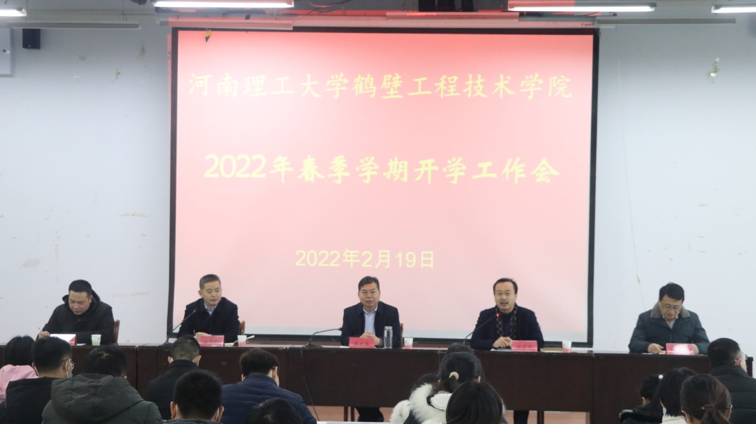 2022年春季学期开学工作会议暨各部门工作任务书签订仪式在拓新楼二楼阶梯教室举行。院长蔡太生出席并讲话,常务副书记杜宗才主持。常务副院长谷海红、副书记齐建民、副院长法冠喆及全体教职工参加了会议。