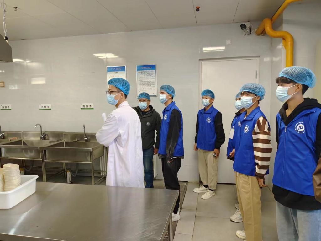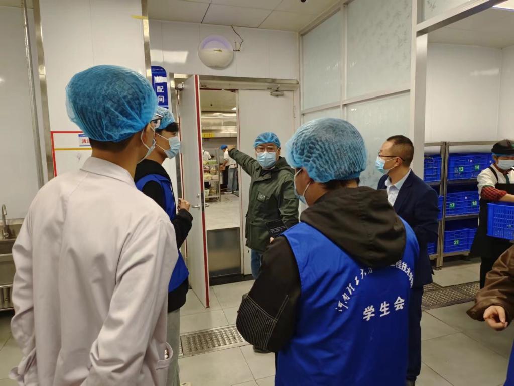 本次活动邀请了院学生会生活权益部、医务室医生及其他学生代表,在后勤安保科田鑫老师及餐厅经理的引导和解说下,各位学生认真察看了餐厅的布局,依次参观了主食库、副食库、干调库、洗消间、粗加工间、烹饪间等房间,实地考察了餐厅管理制度、安全卫生管理情况、食堂饭菜加工流程、食品留样和餐具消毒等环节,餐厅工作人员从蔬菜的购进、清洗、制作到烹饪,详细地介绍了餐品的制作流程,并认真回答了同学们现场提出的问题。规范有序的管理和道道严谨的工序得到了同学们的一致称赞。