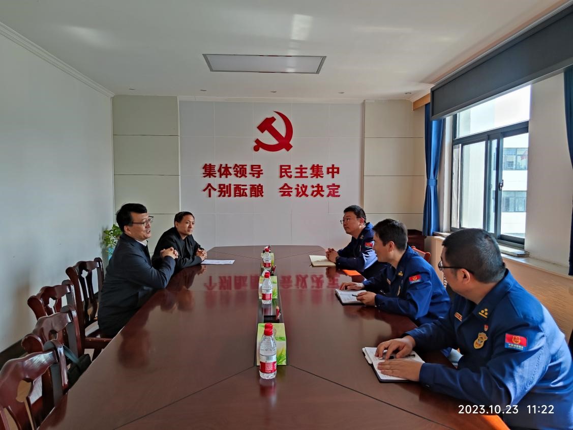 副书记齐建民同志一行三人赴鹤壁市淇滨区消防救援大队调研交流校园消防安全工作。淇滨区消防救援大队大队长李威、副大队长刘鹏飞、参谋贺坤明等领导热情接待,学校后勤安保科负责人以及相关人员参加座谈交流。