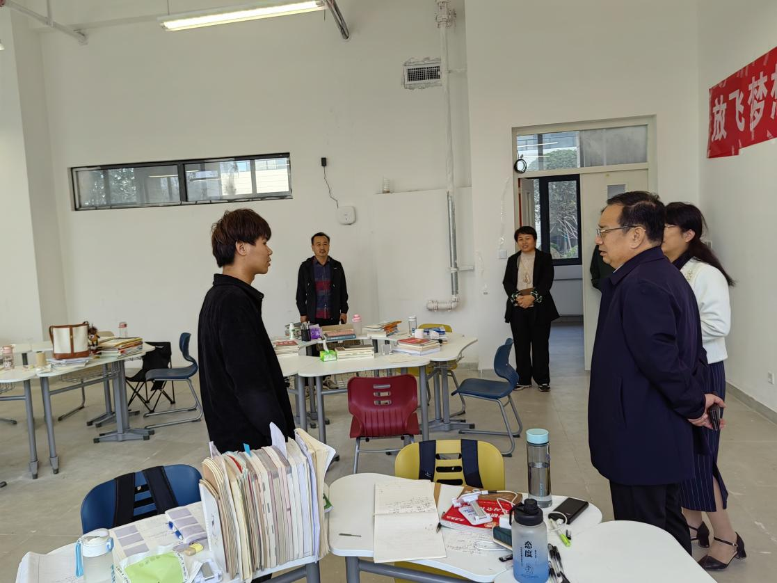考研自习室,金志广书记亲切看望考研备考学子,详细询问了考研学生的学习、住宿、饮食状况等,对同学们不畏困难、努力奋斗的精神表示肯定。他勉励同学们,坚持就是胜利,在明确方向后要坚持到底,一定能考研上岸。学校也一直关心和关注着同学们的生活与学习,希望同学们劳逸结合,坚持体育锻炼,提高学习效率。
