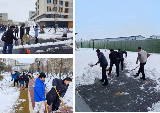 师生以雪为令、全员上阵,积极投入到除雪工作中。