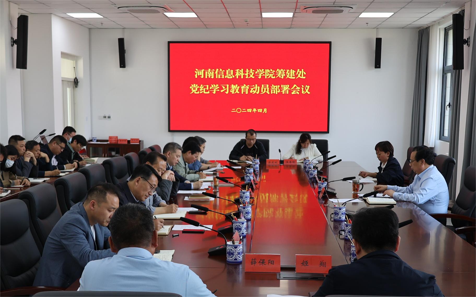 筹建处召开党纪学习教育动员部署会议,学习贯彻习近平总书记关于党纪学习教育的重要讲话和重要指示精神,落实中央、省委关于开展党纪学习教育的决策部署,传达市委常委会扩大会议精神,对筹建处开展党纪学习教育做出安排部署。筹建处党委委员、副主任金志广主持并讲话,筹建处党委班子成员、县处级以上领导干部及各党总支(党支部)书记参加了会议。