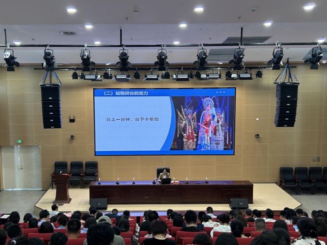 筹建处特聘教育专家阎秋凤以“凝心三尺讲台 聚力申建篇章”为题作专题讲座,全体教师参加培训。