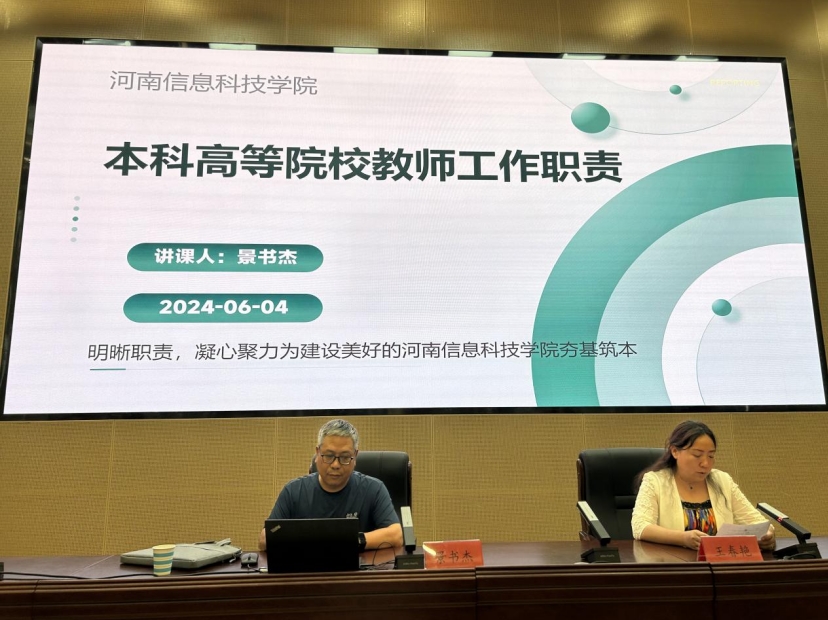 筹建处特聘教育专家景书杰开展题为“本科高等院校教师工作职责”的专题讲座,全体教师参加培训。