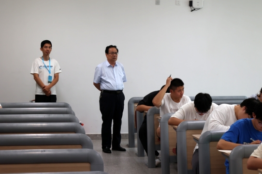 金志广一行深入考场,详细了解了考试组织情况,对考场秩序、考场环境、监考人员履职尽责及学生遵守考纪等情况进行了严格检查,对考场安排、后勤保障等工作进行指导。金志广对期末考试工作给予充分肯定,强调期末考试是检验学生学习成效和学校教学质量的重要环节,要不断加强考务管理,从严从细抓好考风考纪管理,确保考试公平严肃进行;相关职能部门要做好服务工作,确保为考生营造一个温馨、严肃的考试氛围。
