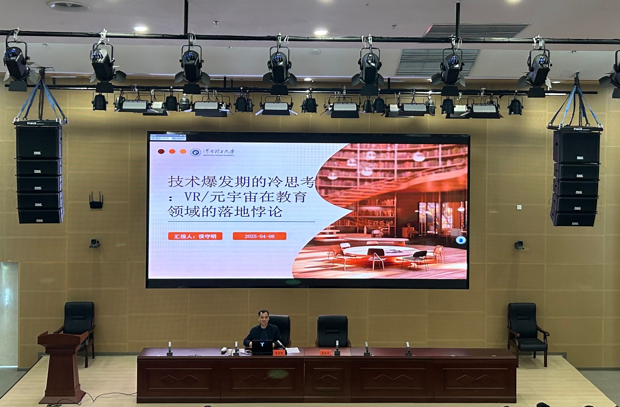 教授、工程数字化与仿真研究室主任侯守明,开展题为“技术爆发期的冷思考:VR/元宇宙在教育领域的落地悖论”专题讲座,全体教师参加培训。
