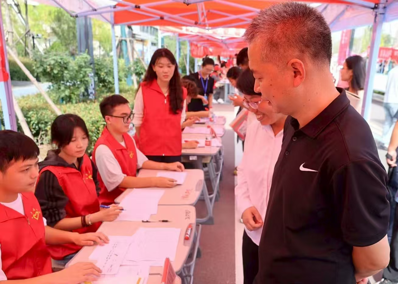 领导到报到现场看望2025级普通本科新生,检查指导迎新工作。