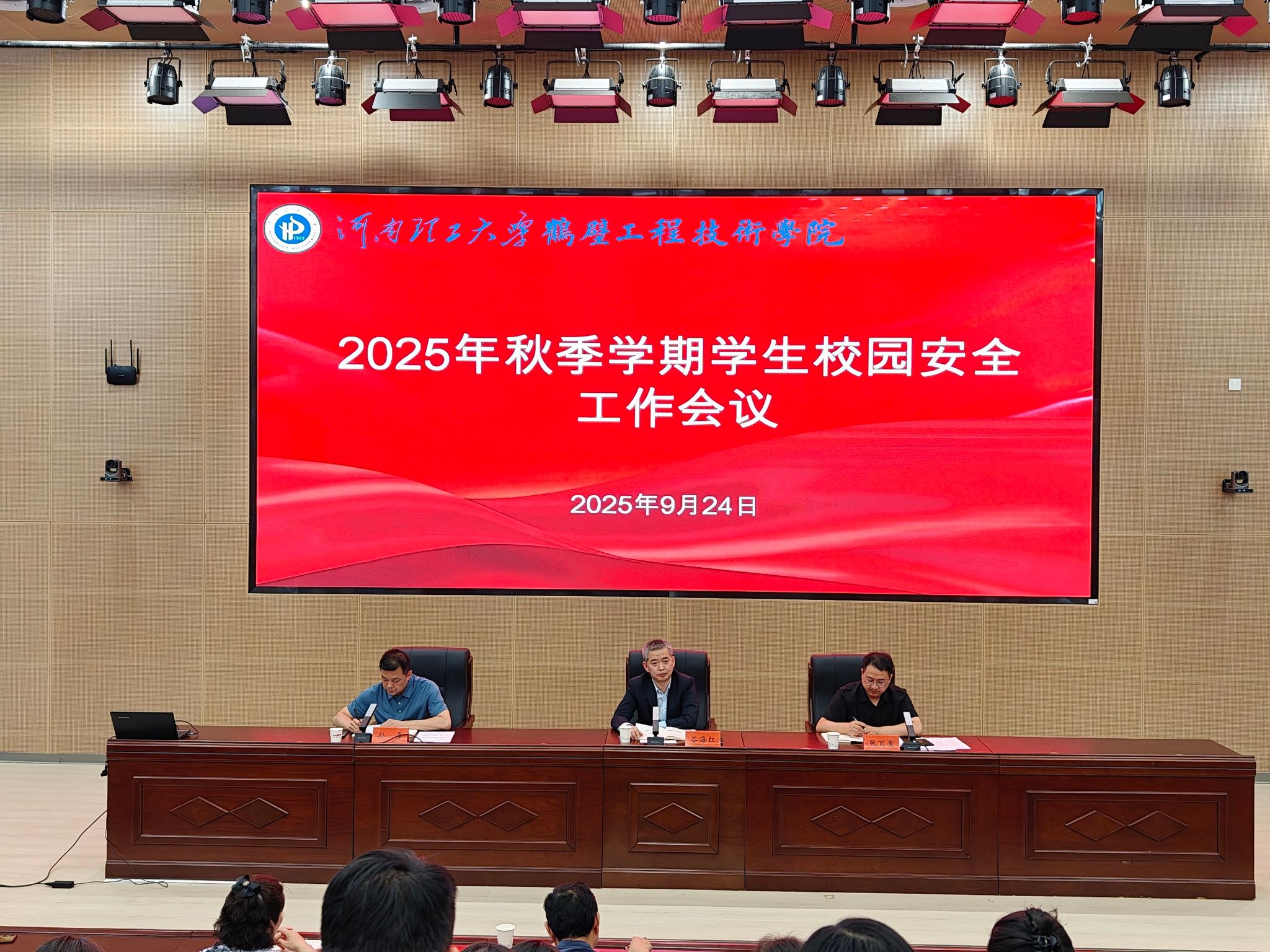 在综合报告厅召开2025年秋季学期学生校园安全工作会议。院长谷海红、副院长张百重出席,各二级KissJAV
