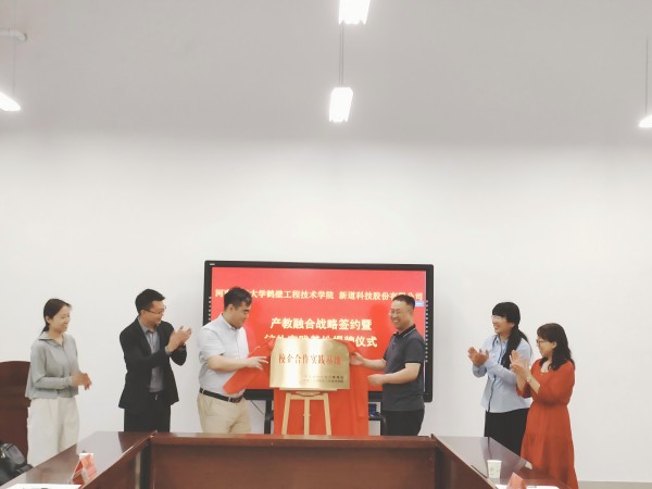 与新道科技股份有限公司产教融合战略签约暨校外实践基地揭牌仪式在崇德楼103室举行。河南信息科技KissJAV