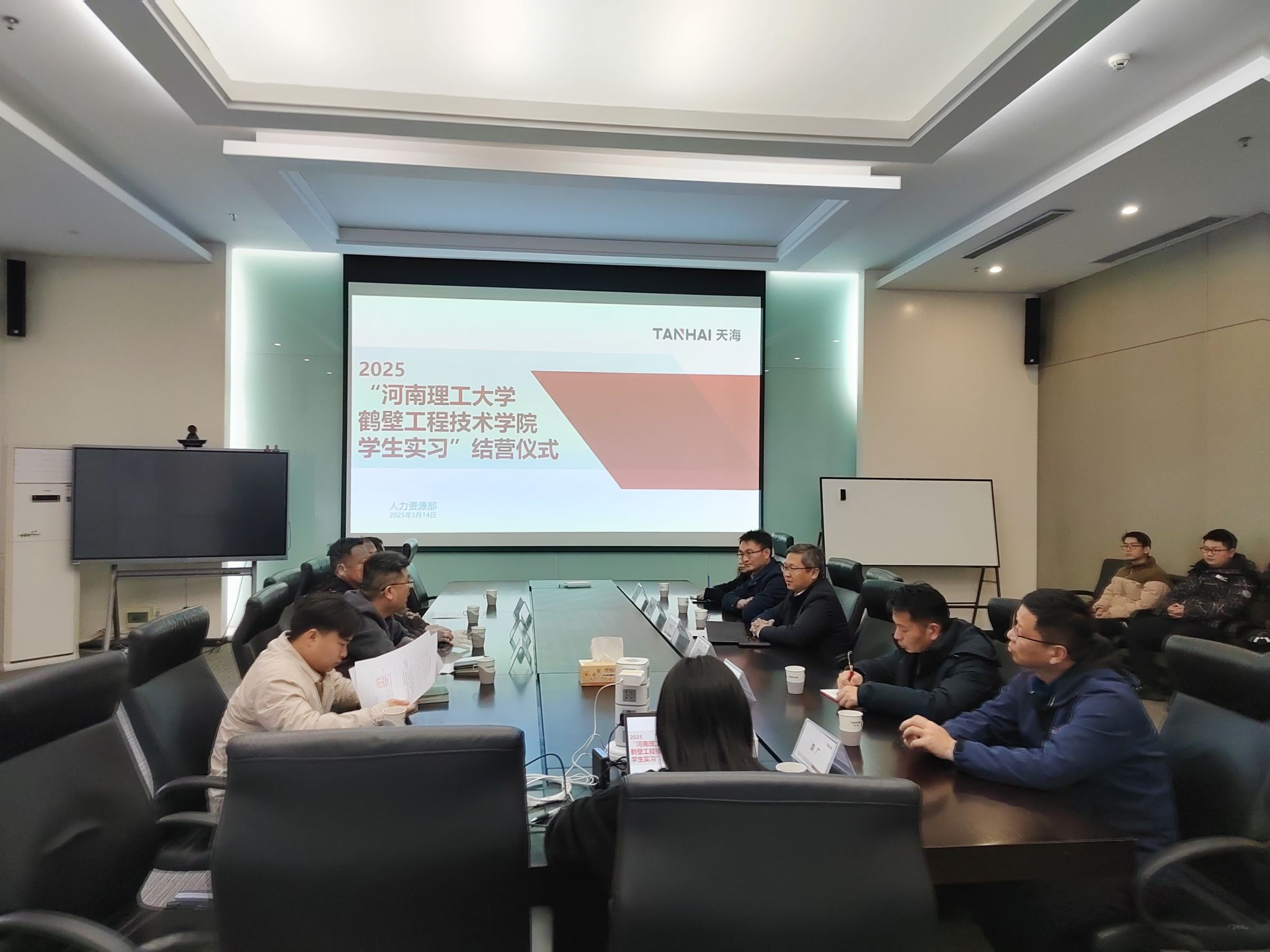 2025届在鹤壁天海电子信息系统有限公司(以下简称天海电子)参加毕业实习的毕业生结业仪式在天海电子会议室举行。结业仪式由天海电子人事经理杨钦钦主持,天海电子人事总监齐金明、工会主席张志国、KissJAV
