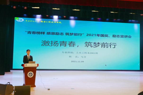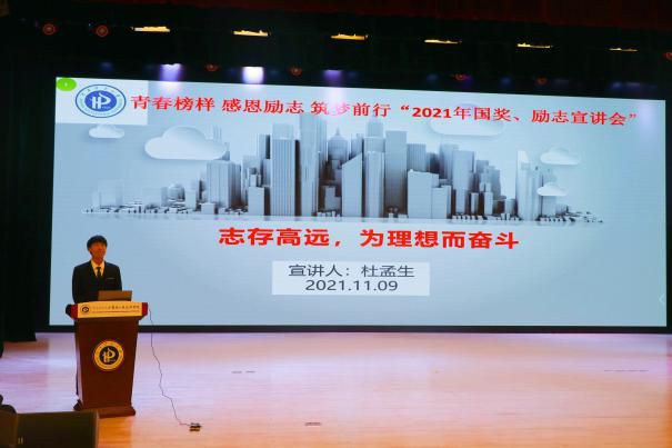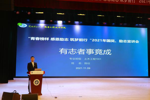 在诚信礼堂举办“青春榜样 感恩励志 逐梦前行”2021年国奖、励志宣讲会。